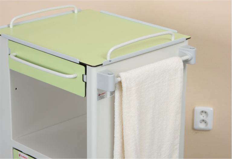 Noptiera cu sau fără masă pliabilă, poate fi așezată pe partea stângă sau dreaptă a patului pacientului, menținându-și toate funcțiile.
